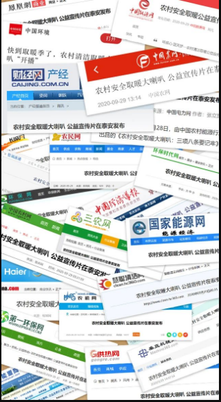 隨著北方各地采暖期的來臨,每年冬天,農村采暖安全都會引起社會各界關注,公益宣傳片發布的非常必要、及時,對提升用戶安全防范意識,預防安全事故發生,讓老百姓安全取暖溫暖過冬起到很好的引導作用,受到了媒體的廣泛關注。農民日報、中國能源報、中國環境報、中國電力網、國家能源網、鳳凰網、財經網、長城網、農民網、慧聰網、北極星環保網等媒體紛紛關注、報道。