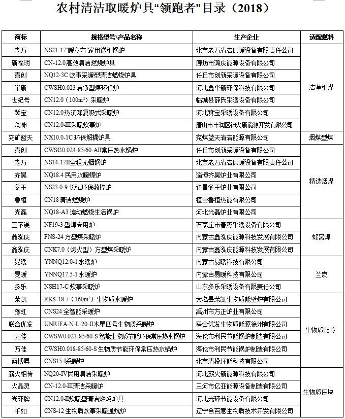 附:農(nóng)村清潔取暖爐具“領(lǐng)跑者”目錄(2018)