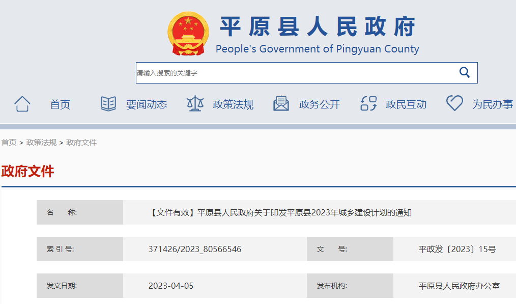 原標題:平原縣人民政府關于印發平原縣2023年城鄉建設計劃的通知