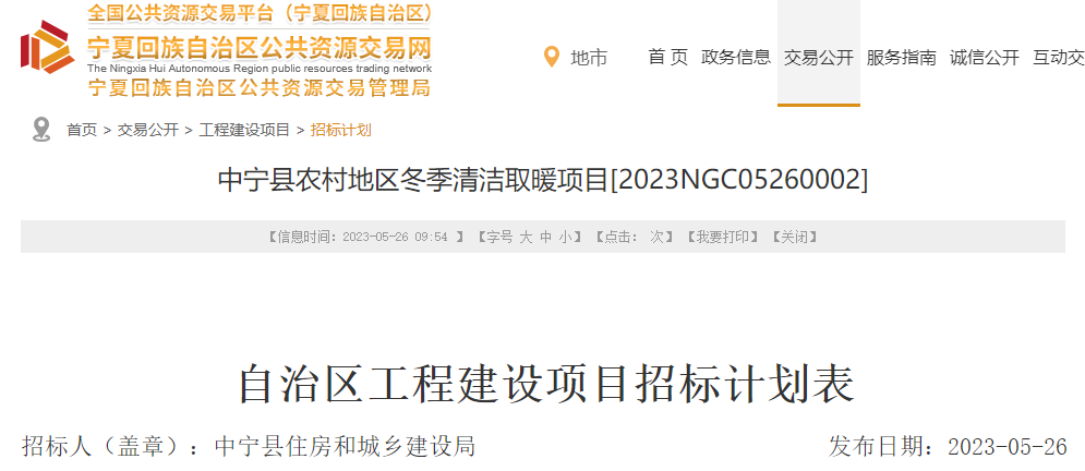 中寧縣農村地區冬季清潔取暖項目[2023NGC05260002]