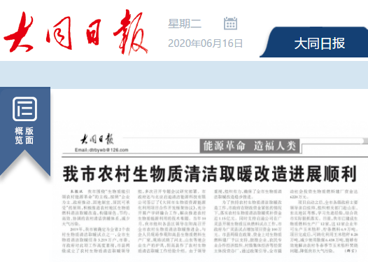 山西省大同市圍繞“生物質能引領農村能源革命”的主線,按照“企業為主、政府推動、因地制宜、居民可承受”的原則,積極推進農村地區生物質燃料清潔取暖改造,構建綠色、節約、高效、協調的農村清潔供暖體系,減少大氣污染。