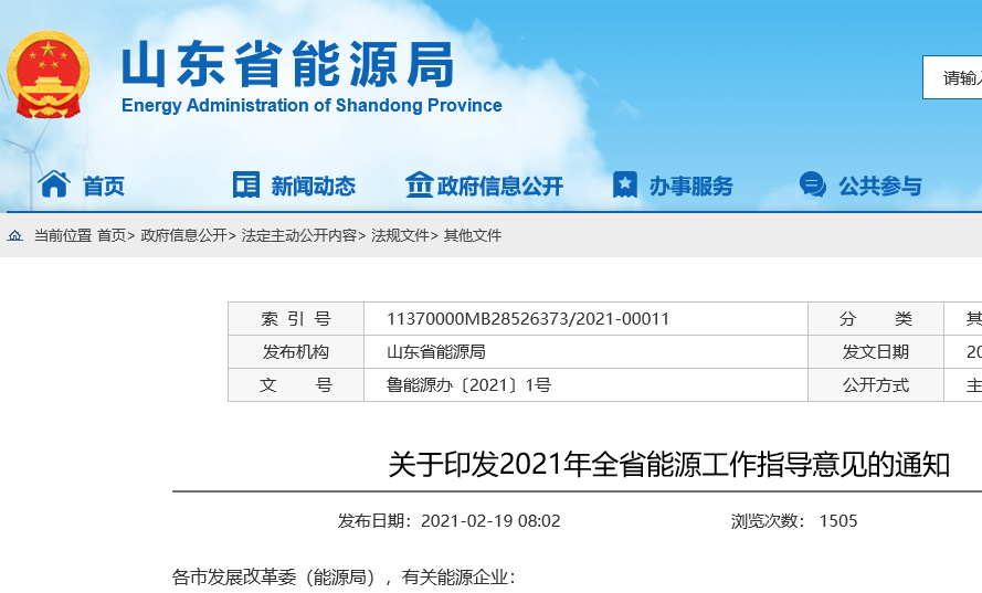 中國爐具網訊:近日,山東省印發《2021年全省能源工作指導意見》。
