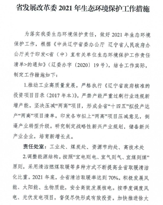 爐具網訊:近日,遼寧省發展和改革委員會印發《省發展改革委關于印發2021年生態環境保護工作措施的通知》指出,調整能源結構。按照”宜電則電、宜氣則氣、宜煤則煤”原則,采用清潔燃煤取暖等多種方式不斷提高全省取暖清潔化比重。2021年底,全省清潔取暖率達到70%。積極發展風能、大陽能、生物質能,安全高效發展核電。