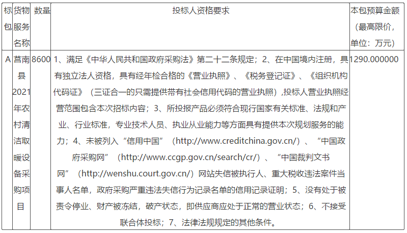 二、采購項目名稱:莒南縣2021年農村清潔取暖設備采購項目