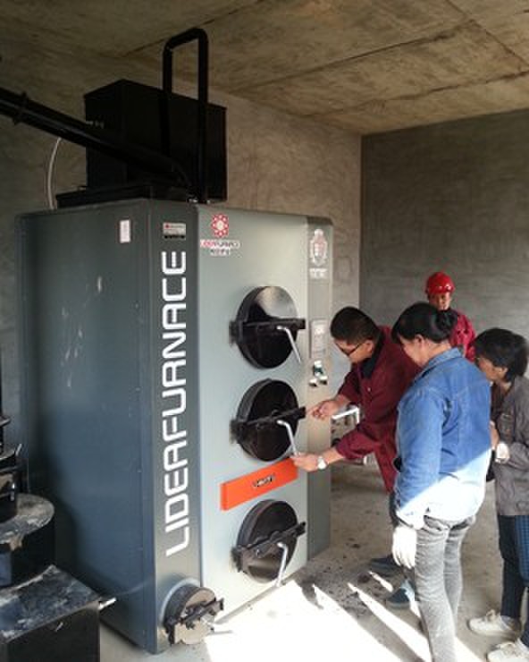 圖為柳店公司技術人員在向客戶介紹數控鍋爐使用方法