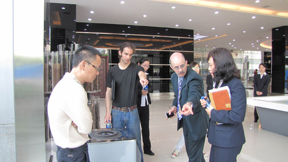 他們先是前往了我公司的湖北工業園,參觀了沼氣,生物質生產車間等地,隨后緊接著來到了湖南總公司。在參觀期間,Samuel Benson和Todd Albil了解了我公司的發展歷程,并檢測研究了最新的幾款生物質炊事爐具,通過分析他們的市場對產品提出了他們的構想。