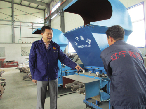 半年后,馬亮和科研組一起研制出了第一臺秸稈燃料成型機樣機,也生產出了秸稈煤,但是在實際生產中,他們的設備效率卻很低,每小時產量僅不到30公斤,而且噪音很大。但這并沒有阻止馬亮搞研發的決心,他不斷增加投入,歷經5年時間,耗資600多萬元,于2007年3月他們的三柱塞式秸稈燃料成型機小型樣機試生產成功。2008年,馬亮一鼓作氣,注冊創辦了現在的遼寧鑫能機械設備制造有限公司。關于取名“鑫能”,馬亮解釋說,這是取的新能源的諧音,他想用“秸稈煤”這種新能源建設美麗的家鄉,改善家鄉的環境。
