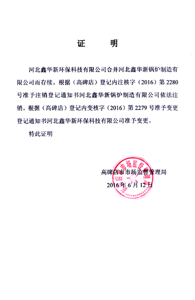 河北鑫華新環保科技有限公司 河北鑫華新鍋爐制造有限公司 2016年6月11日