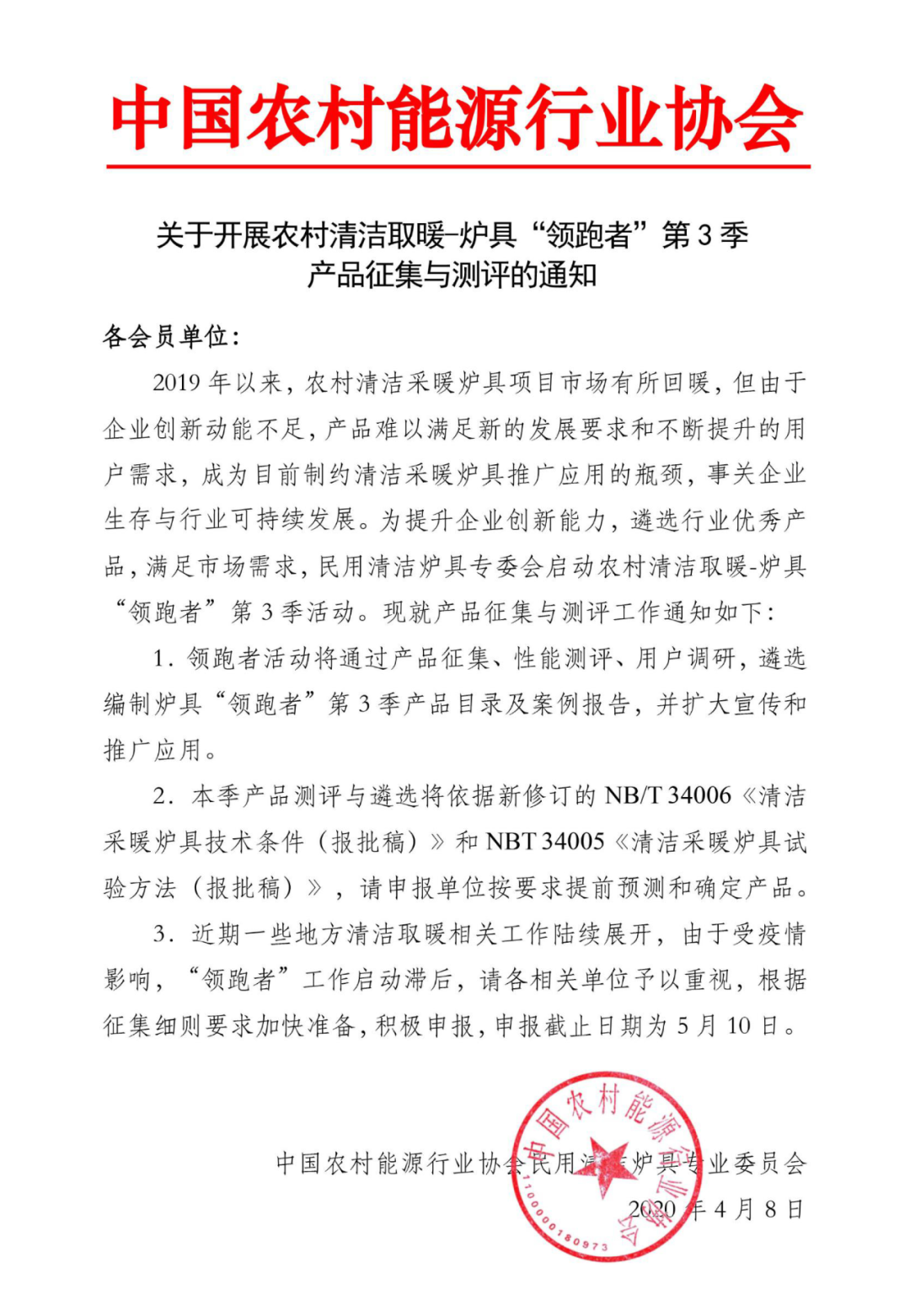 農村清潔取暖-爐具“領跑者”第3季產品征集細則(延期舉辦)