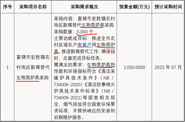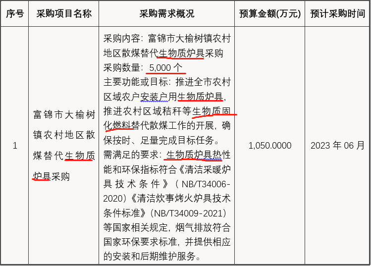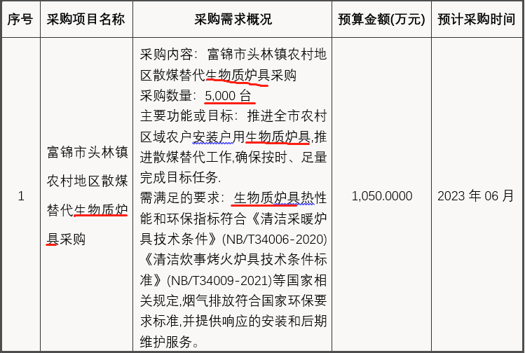 近日,從黑龍江省政府采購網獲悉,黑龍江省佳木斯市富錦市二龍山鎮、興隆崗鎮、硯山鎮、向陽川鎮、上街基鎮、頭林鎮、大榆樹鎮、長安鎮、富錦鎮、宏勝鎮等10個鎮46000臺清潔取暖散煤替代生物質爐具政府采購意向公開。其中,二龍山鎮5000臺、興隆崗鎮5000臺、硯山鎮5000臺、向陽川鎮5000臺、上街基鎮5000臺、頭林鎮5000臺、大榆樹鎮5000臺、長安鎮5000臺、富錦鎮1000臺、宏勝鎮5000臺。主要功能或目標:推進全市農村區域農戶安裝戶用生物質爐具,推進農村區域秸稈等生物質固化燃料替代散煤工作的開展,確保按時、足量完成目標任務。需滿足的要求:生物質爐具熱性能和環保指標符合《清潔采暖爐具技術條件》(NB/T34006-2020)《清潔炊事烤火爐具技術條件標準》(NB/T34009-2021)等國家相關規定,煙氣排放符合國家環保要求標準,并提供響應的安裝和后期維護服務。預計采購時間2023年6月、7月。