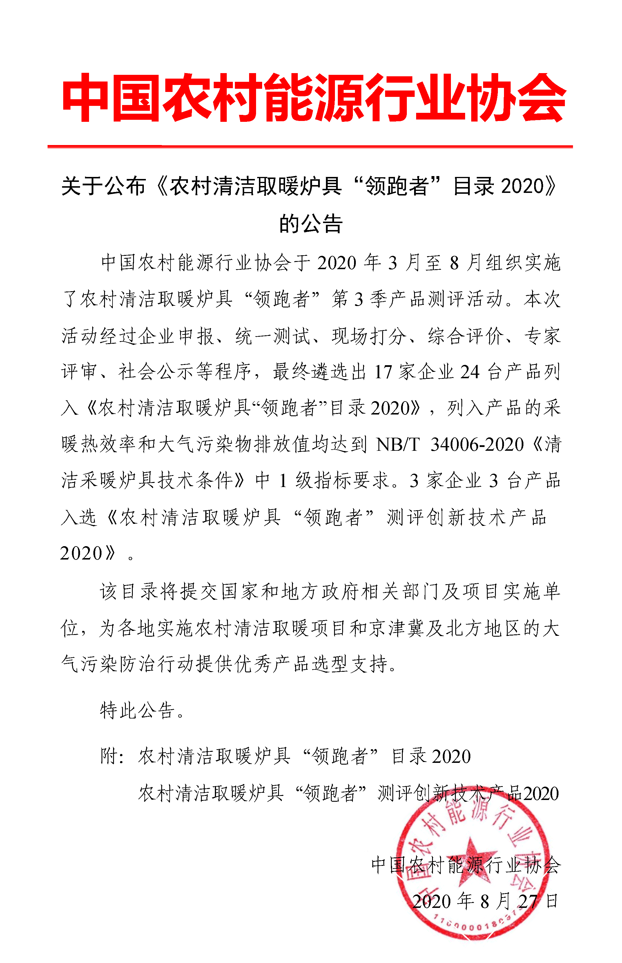 公告 | 農村清潔取暖爐具“領跑者”目錄2020