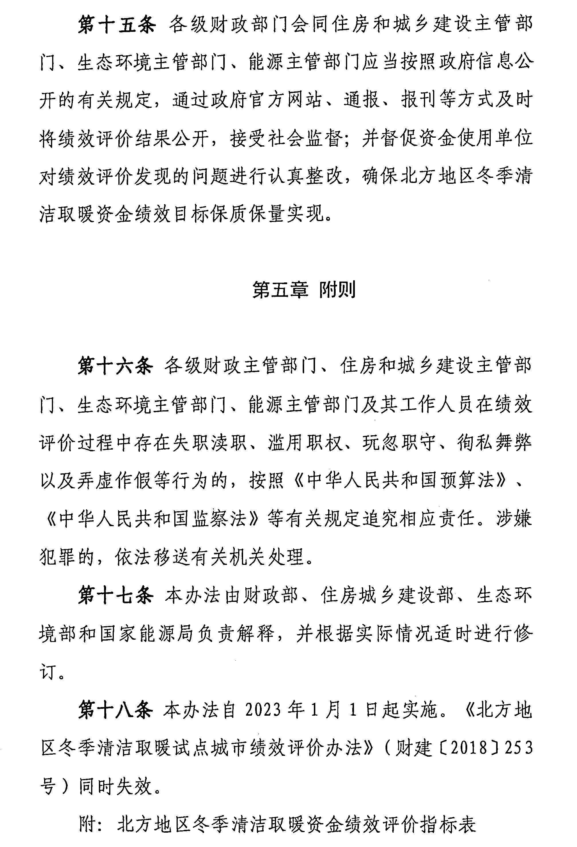 爐具網訊:近日,財政部、住房城鄉建設部、生態環境部、國家能源局等4部門關于印發《北方地區冬季清潔取暖資金績效評價辦法》的通知指出,各級財政部門會同住房和城鄉建設主管部門、生態環境主管部門、能源主管部門應當按照政府信息公開的有關規定,通過政府官方網站、通報、報刊等方式及時將績效評價結果公開,接受社會監督;并督促資金使用單位對績效評價發現的問題進行認真整改,確保北方地區冬季清潔取暖資金績效目標保質保量實現。保證北方地區冬季清潔取暖項目實施效果,提高財政資金使用的規范性、安全性和有效性,確保清潔取暖各項工作順利實施。