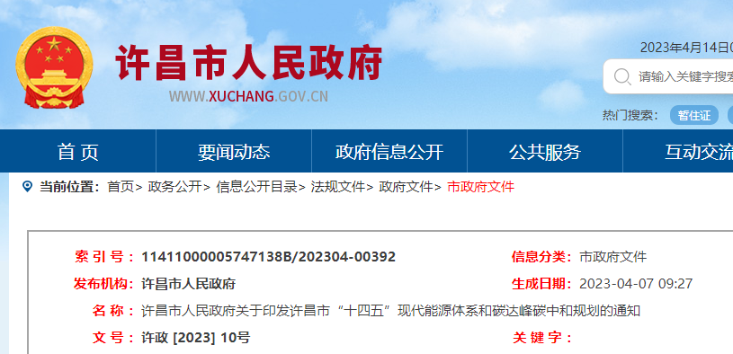 許昌市“十四五”現代能源體系和碳達峰碳中和規劃