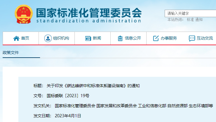 《碳達峰碳中和標準體系建設指南》已經2023年2月6日國務院標準化協調推進部際聯席會議全體會議通過,現印發給你們,請結合實際認真貫徹落實。