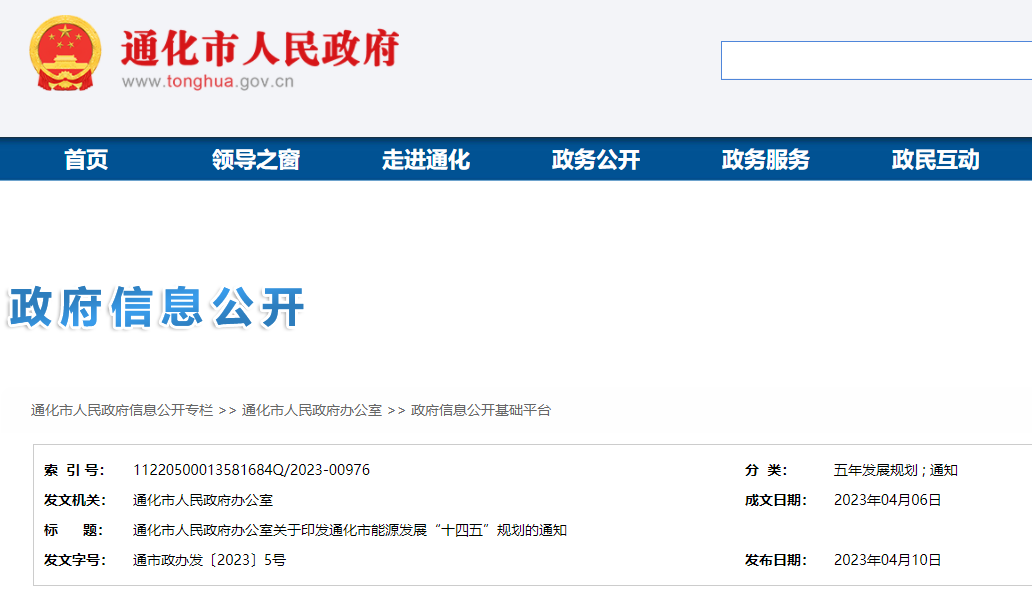 通化市人民政府辦公室關(guān)于印發(fā)通化市能源發(fā)展“十四五”規(guī)劃的通知