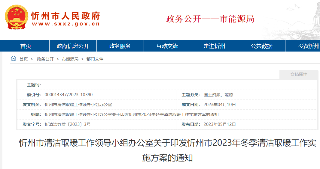 忻州市清潔取暖工作領(lǐng)導(dǎo)小組辦公室關(guān)于印發(fā)忻州市2023年冬季清潔取暖工作實(shí)施方案的通知