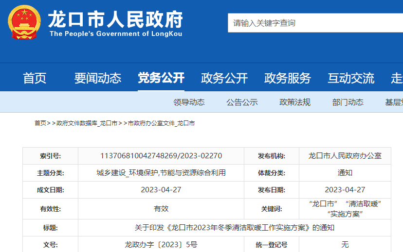 關于印發《龍口市2023年冬季清潔取暖工作實施方案》的通知