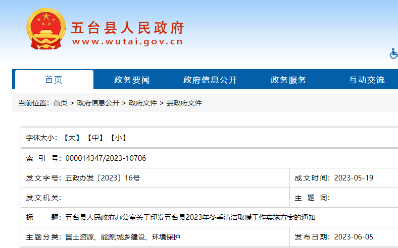 山西忻州五臺縣2023年冬季清潔取暖工作實施方案