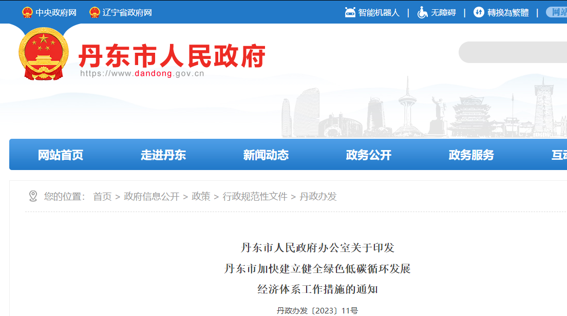 丹東市人民政府辦公室關于印發丹東市加快建立健全綠色低碳循環發展經濟體系工作措施的通知