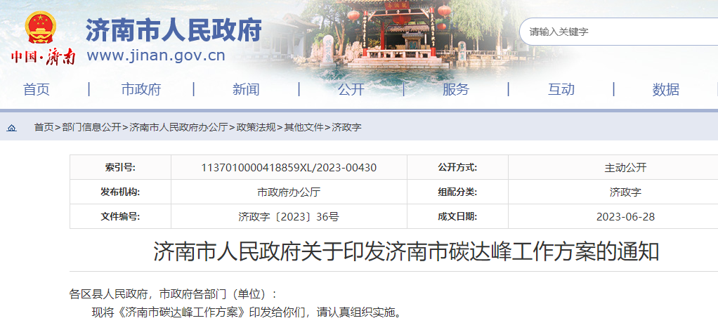 濟南市人民政府關于印發濟南市碳達峰工作方案的通知