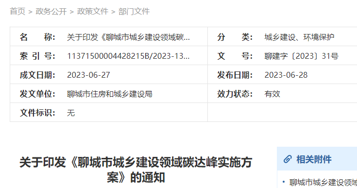 關于印發《聊城市城鄉建設領域碳達峰實施方案》的通知