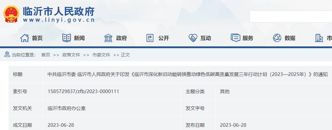 中共臨沂市委、臨沂市人民政府關(guān)于印發(fā)《臨沂市深化新舊動(dòng)能轉(zhuǎn)換推動(dòng)綠色低碳高質(zhì)量發(fā)展三年行動(dòng)計(jì)劃(2023—2025年)》的通知