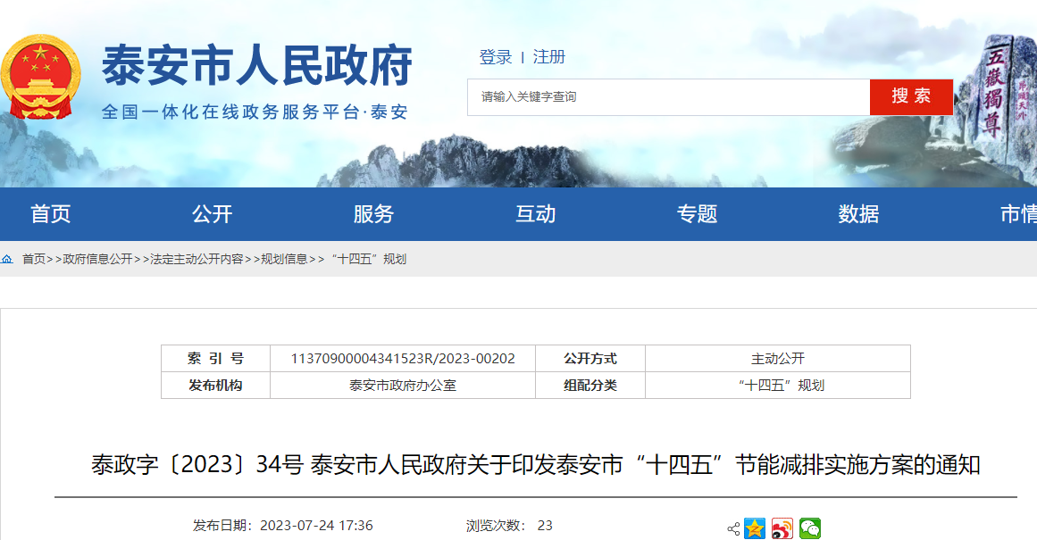 泰安市人民政府關于印發泰安市“十四五”節能減排實施方案的通知