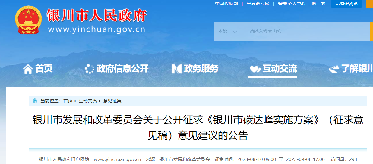 銀川市發展和改革委員會關于公開征求《銀川市碳達峰實施方案》(征求意見稿)意見建議的公告