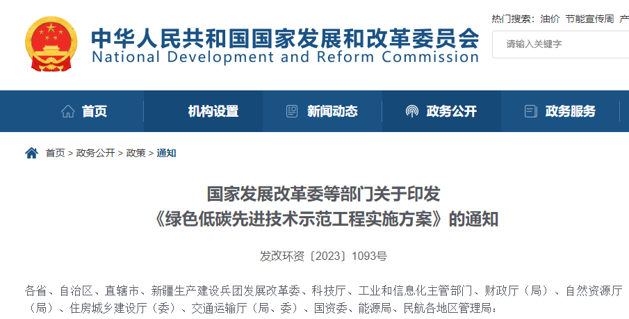 國家發(fā)展改革委等部門關(guān)于印發(fā)《綠色低碳先進(jìn)技術(shù)示范工程實(shí)施方案》的通知