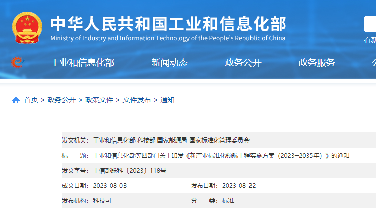工業(yè)和信息化部等四部門關于印發(fā)《新產(chǎn)業(yè)標準化領航工程實施方案(2023─2035年)》的通知