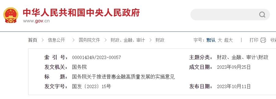 國務(wù)院關(guān)于推進(jìn)普惠金融高質(zhì)量發(fā)展的實施意見