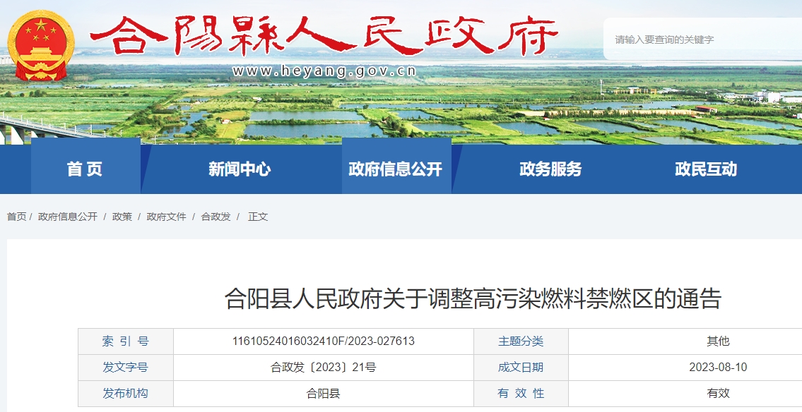 本通告于2023年8月10日起施行,至2028年8月10日起自行廢止。原合陽縣人民政府《關于縣城高污染禁燃區禁止使用燃煤等高污染燃料的通告》(合政發〔2020〕45號)同時廢止。