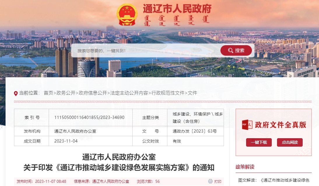 通遼市人民政府辦公室關于印發《通遼市推動城鄉建設綠色發展實施方案》的通知