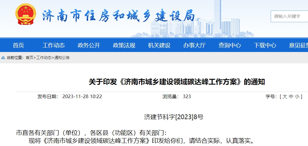 關(guān)于印發(fā)《濟(jì)南市城鄉(xiāng)建設(shè)領(lǐng)域碳達(dá)峰工作方案》的通知