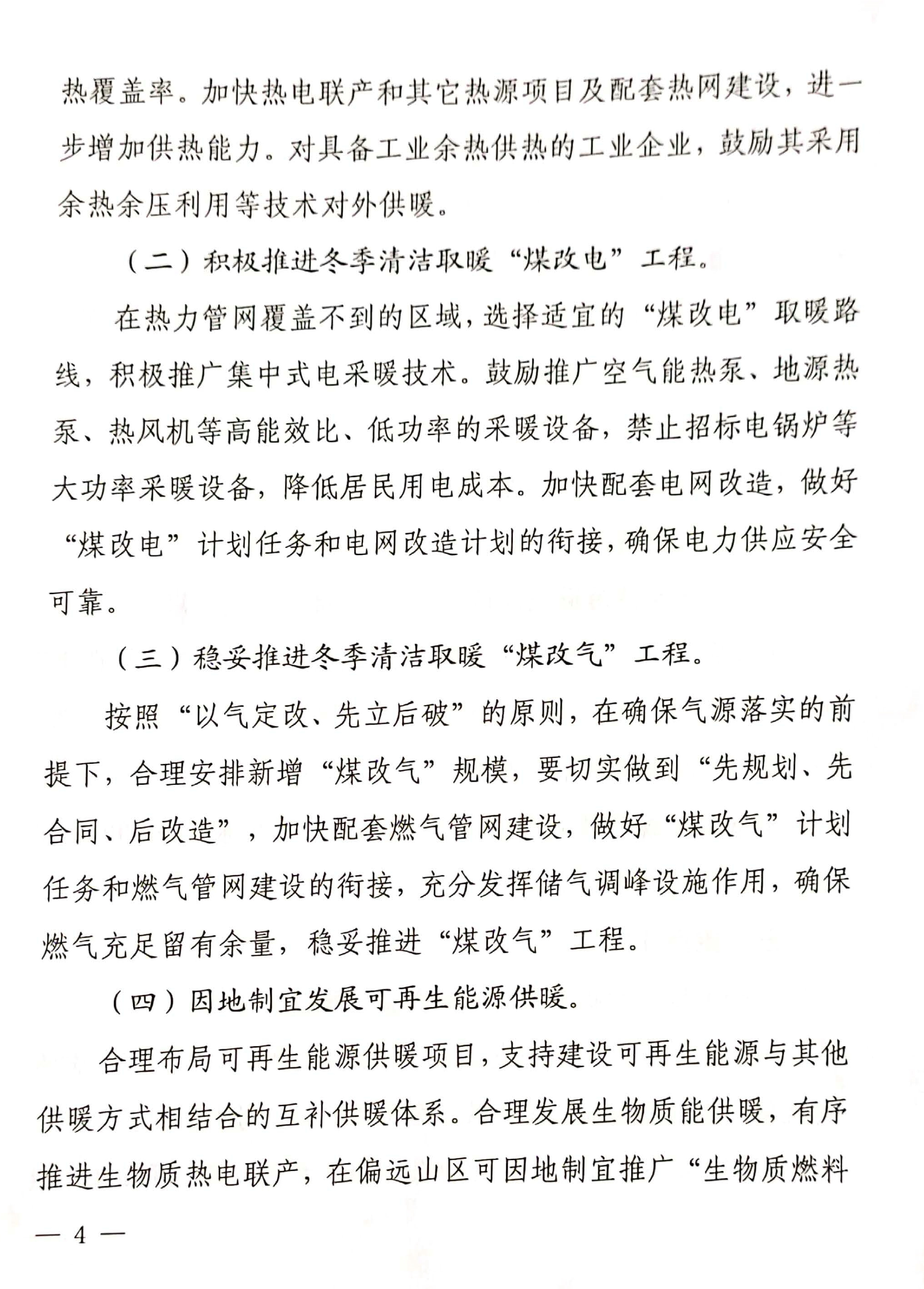 《方案》明確,因地制宜發(fā)展可再生能源供暖。合理布局可再生能源供暖項目,支持建設(shè)可再生能源與其他供暖方式相結(jié)合的互補供暖體系。合理發(fā)展生物質(zhì)能供暖,有序推進生物質(zhì)熱電聯(lián)產(chǎn),在偏遠(yuǎn)山區(qū)可因地制宜推廣生物質(zhì)燃料+專用爐具供暖。鼓勵在小城鎮(zhèn)和農(nóng)村地區(qū)使用戶用太陽能供暖系統(tǒng)。