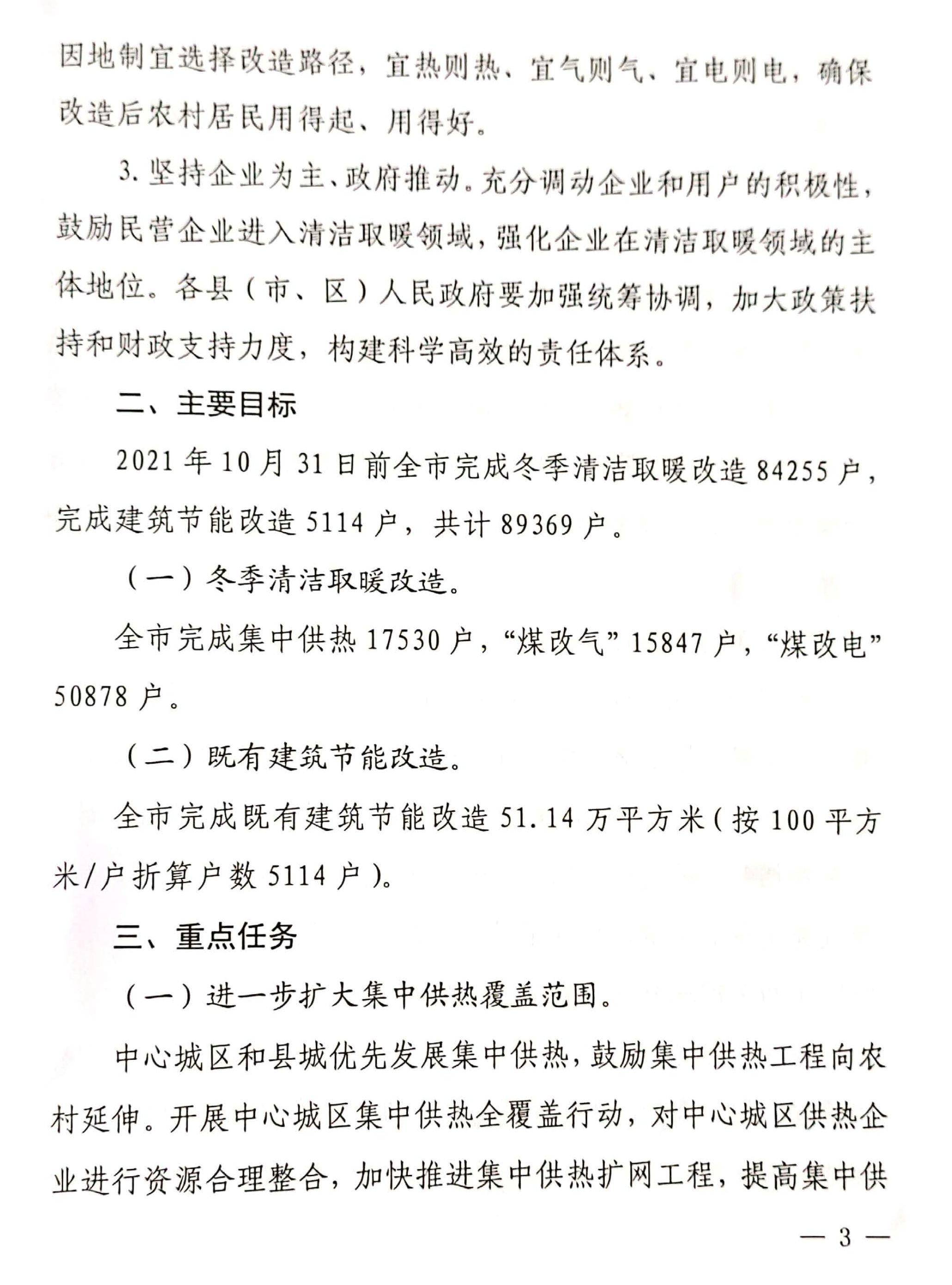 爐具網(wǎng)訊:近日,山西省運城市印發(fā)《運城市2021年冬季清潔取暖工作實施方案》指出,2021年10月31日前全市完成冬季清潔取暖改造84255戶,完成建筑節(jié)能改造5114戶,共計98369戶。暖博會持續(xù)關(guān)注農(nóng)村清潔取暖。