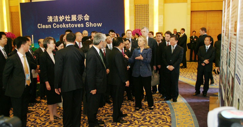 2012年5月3日,在北京出席“第四輪中美戰略與經濟對話”的美國國務卿希拉里在國務委員戴秉國的陪同下參觀了在釣魚臺國賓館應美方要求舉辦的小型“中國清潔爐具展示會”,希拉里饒有興趣地觀看了由中國農村能源行業協會組織抽調的30余種不同類型的高效低排放爐具和展板。張桃林副部長和楊雄年副司長陪同參觀。