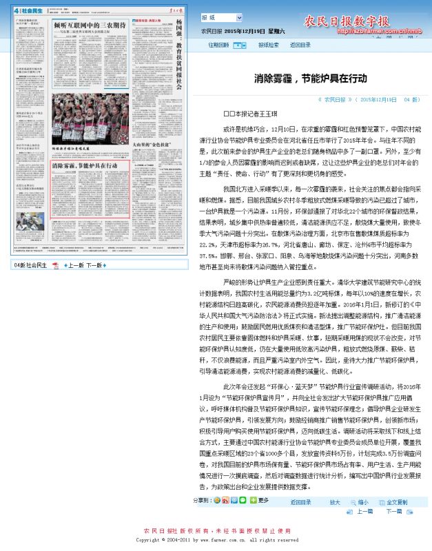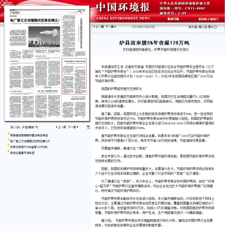 1月1日起, 修訂后的新《中華人民共和國大氣污染防治法》施行。新法鼓勵居民燃用優質煤炭和潔凈型煤,推廣節能環保型爐灶。1月,也是我國北方采暖爐銷售和使用旺季,社會各界對采暖導致污染加重十分關注。為落實新法,普及知識,中國農村能源行業協會節能爐具專業委員會和中國爐具網將在2016年1月開展“節能環保爐具宣傳月”活動,并向全社會發出倡議。