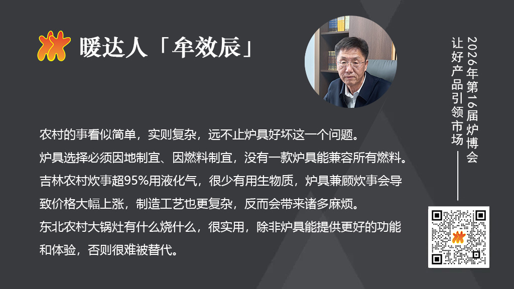 東北農村整體消費能力相對較低,很多地方燒煤農戶都不到2%,大部分還是沿用傳統大鍋灶燒柴等方式。對于爐具行業來說,把目標客戶定在商用領域會更合適,農村家用爐具推廣難度較大,農民更傾向于“愿意用啥用啥”維持現狀。