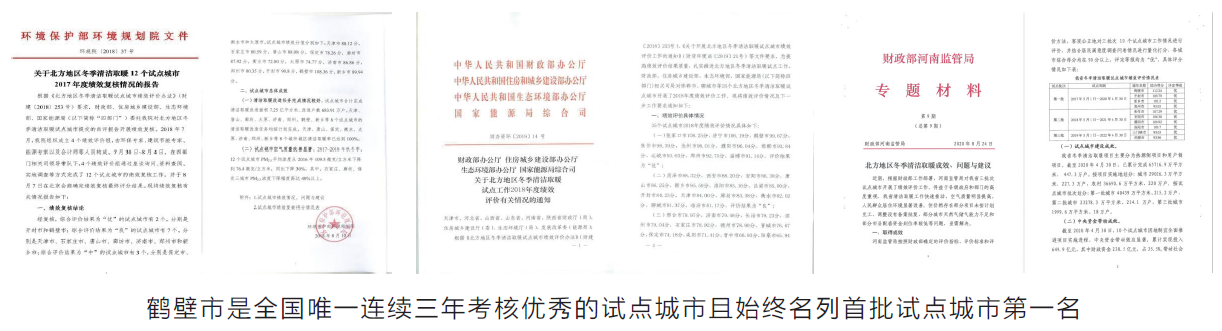 一是清潔取暖考核成績全國領先。鶴壁市在43個清潔取暖試點城市中是全國唯一連續三年考核成績優秀的試點城市,且始終名列首批試點城市第一名。2019年潔凈煤取暖規劃中期評估優秀,作為典范試點城市,鶴壁模式和經驗詳細寫入國家四部委呈送國務院的評估報告中。