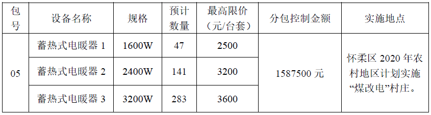 項目名稱:懷柔區(qū)2020年農(nóng)村地區(qū)“減煤換煤”工程“煤改電”設備供貨及安裝供應商采購項目-蓄熱式電暖器