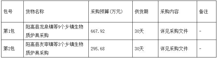 2019年農村地區生物質燃料清潔取暖生物質爐具采購項目招標公告