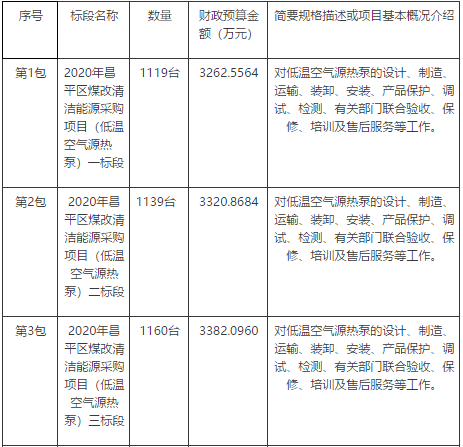 2020年昌平區煤改清潔能源采購項目(低溫空氣源熱泵)一至六標段公開招標公告