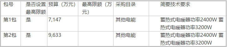 負責將天津市薊州區城鄉取暖戶燃煤設備改為蓄熱式電暖器,由供應商負責安裝(含戶內線路改造及戶外供電電表以下線路部分)和運營維護等。服務商提供的設備功率每戶保證有三臺,(其中2臺2400 瓦,1臺3200瓦/臺)。本項目不接受聯合體投標,不接受進口產品投標。