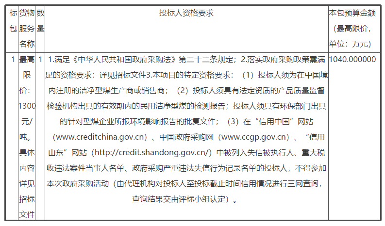 德州市德城區發展和改革局2020年潔凈型煤采購項目公開招標公告