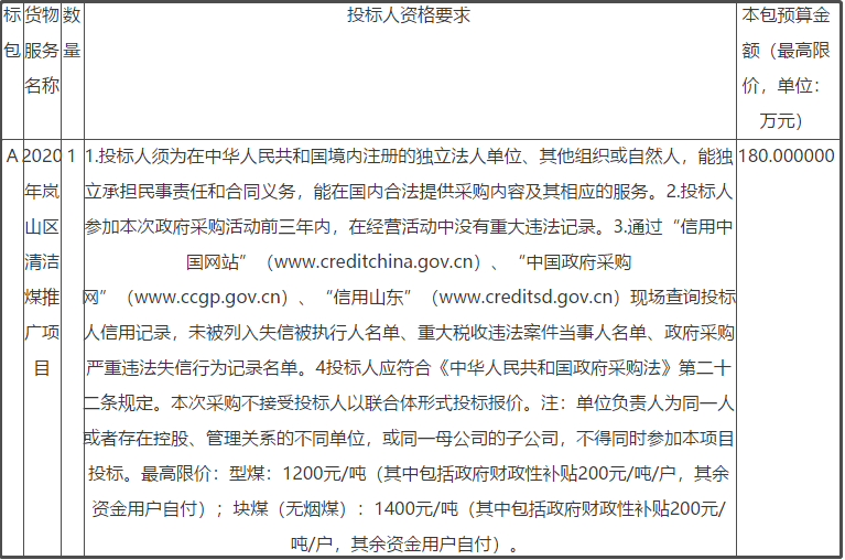 二、采購項目名稱:2020年嵐山區清潔煤推廣項目