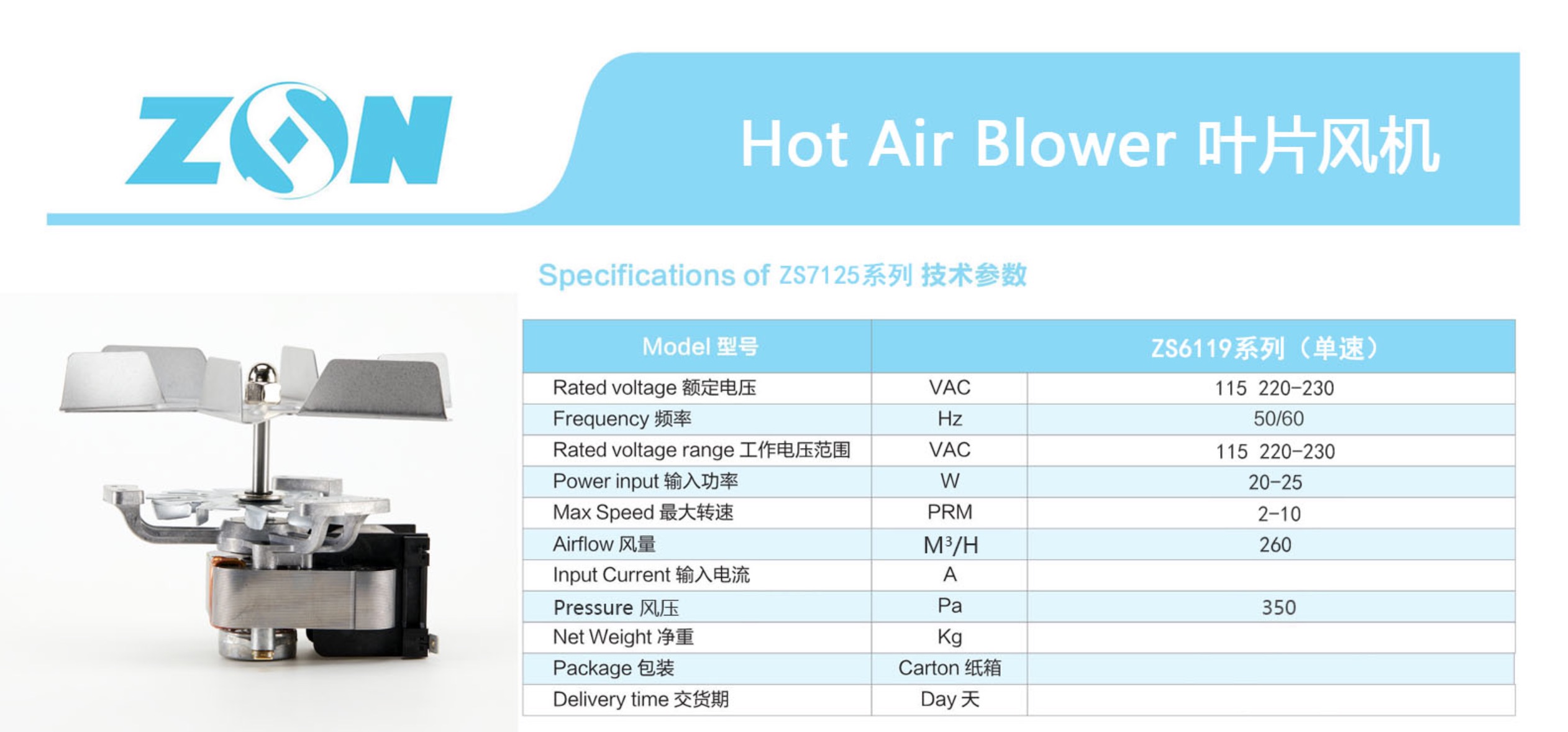 產品簡介:葉片風機廣泛應用于醫用烘箱、烤箱、保溫柜等熱風循環設備,風機具有耐高溫,低噪音,壽命長等特點。