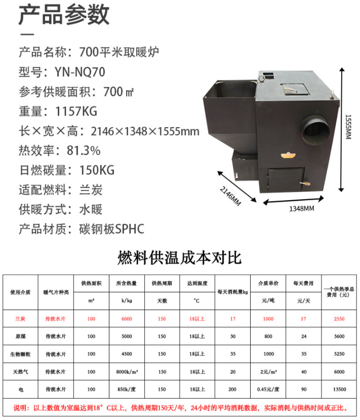 | 供熱面積: | 700平米 | 鍋爐類型: | 熱水鍋爐 |