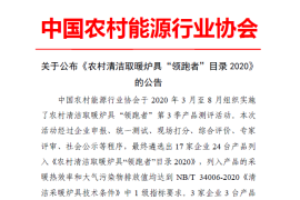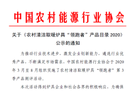 關于《農村清潔取暖爐具“領跑者”產品目錄2020》公示的通知。